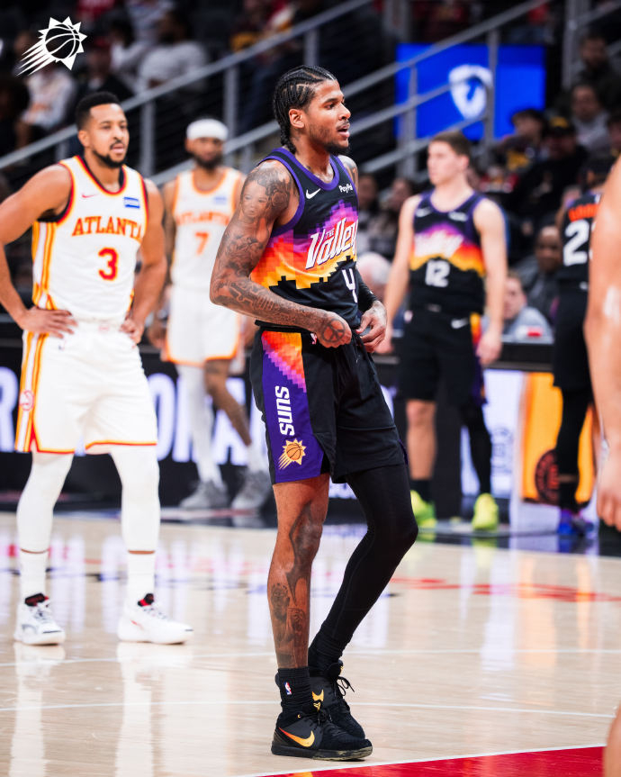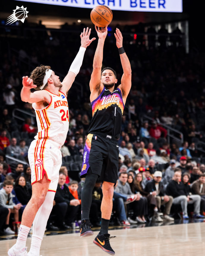 布克今天表现出色,仅出战28分钟,投篮21中12,三分球9中5,罚球2中2,空砍31分4篮板3助攻1抢断的数据。第三节比赛,布克火力全开,单节独得16分,但因为崴脚末节没有再登场。